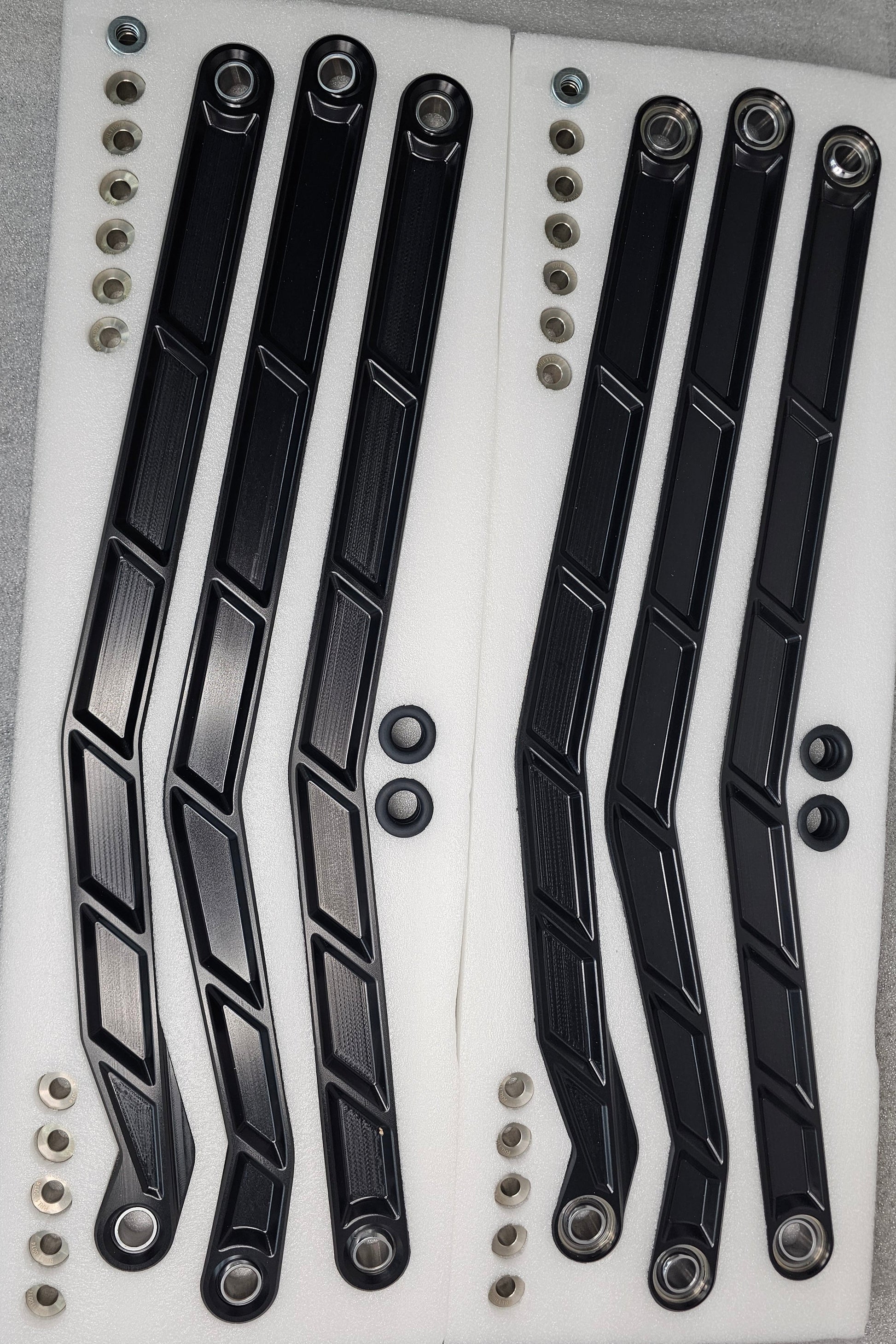 Our X3 Radius Rods were designed to improve your suspension performance while bringing a unique style to your ride. CNC machined from 6061 billet aluminum, the rods are hard anodized black for longer lasting color. Performance improvements include teflon coated high strength uni-balls that include misalignment spacers. Rubber dust rings help keep small pebbles and dust out of the joints. Installation is quick and easy as the rod arms bolt into the factory position.