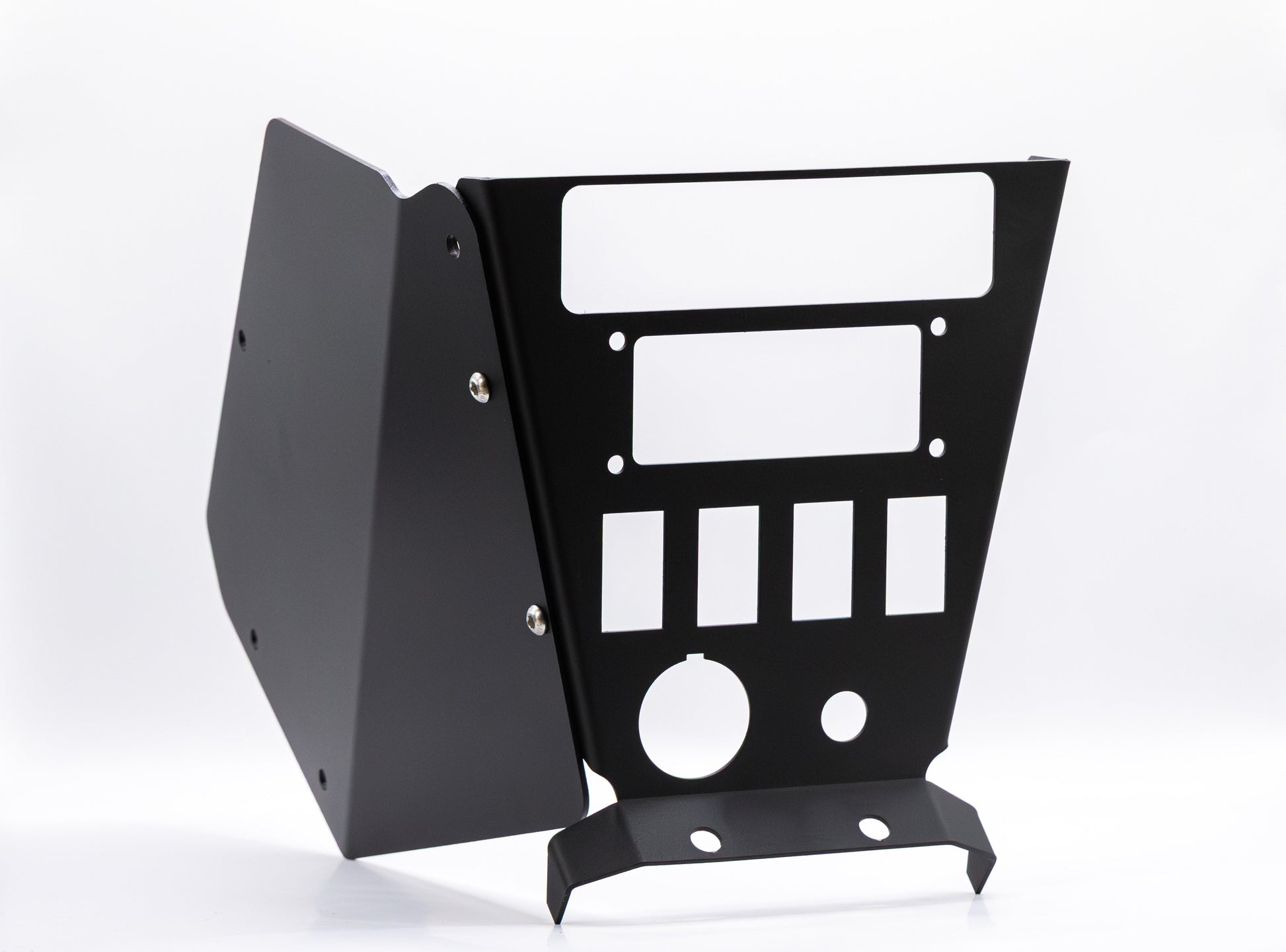 Need some extra rocker switches with your PCI configuration? This ones for you! Flush Mount for PCI Setup and 4 rocker switches. Panels and console are laser cut and powder coated with a texture coat for durability and flush fit. Guarantee your radios and intercom will not stick out they will sit nice and flush for a good looking finish. Re-engineering radio mounting bracket so it site nice and clean with no face bolts. Hardware for mounting your radios and intercom are included.