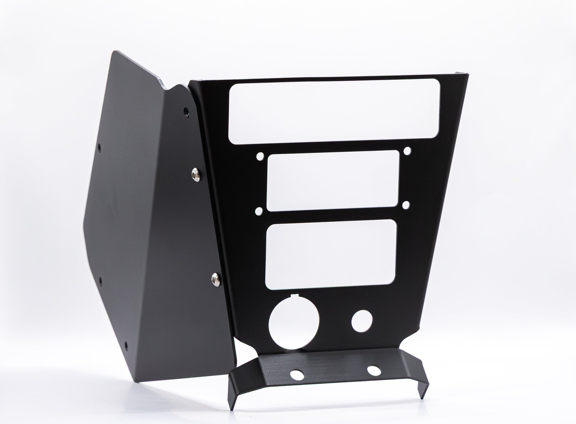 Need room for a switchpro with your PCI configuration? This ones for you! Flush Mount for PCI Setup and Switchpro9100. Panels and console are laser cut and powder coated with a texture coat for durability and flush fit. Guarantee your radios and intercom will not stick out they will sit nice and flush for a good looking finish. Re-engineering radio mounting bracket so it site nice and clean with no face bolts. Hardware for mounting your radios and intercom are included.